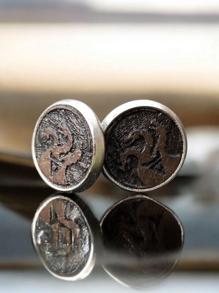 Te niezwykłe kolczyki łączą w sobie potęgę czasu i słowiańską duchowość. Powstały z autentycznego czarnego dębu liczącego około 1800 lat – drewna, które przez stulecia spoczywało w głębinach ziemi i wody, nabierając głębokiej barwy i niezwykłej energii.
